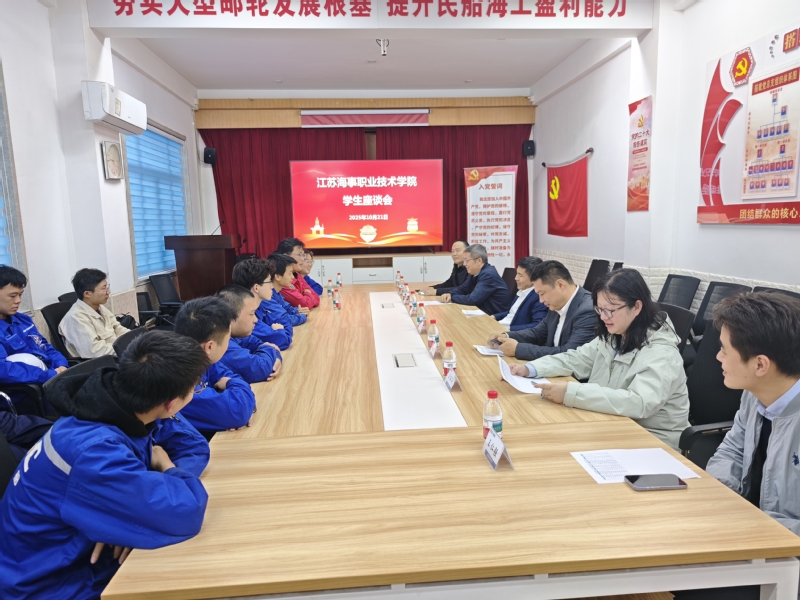 下午,在上海外高桥造船有限公司,双方就产教融合、深化校企合作进行了座谈交流。温华兵说,上海外高桥造船有限公司在造船领域有着深远的影响,特别是在深海钻井平台和国产大型邮轮设计建造方面处于世界先进水平。他表示,校企深度融合是职业教育对接产业需求、提升办学质量的核心路径,希望双方在人才培养、师资共建,特别是在产教融合共同体、产业学院建设上加强交流、深化合作。会后,校长温华兵一行看望了22级毕业生和23级实习生,并与部分学生进行座谈交流。