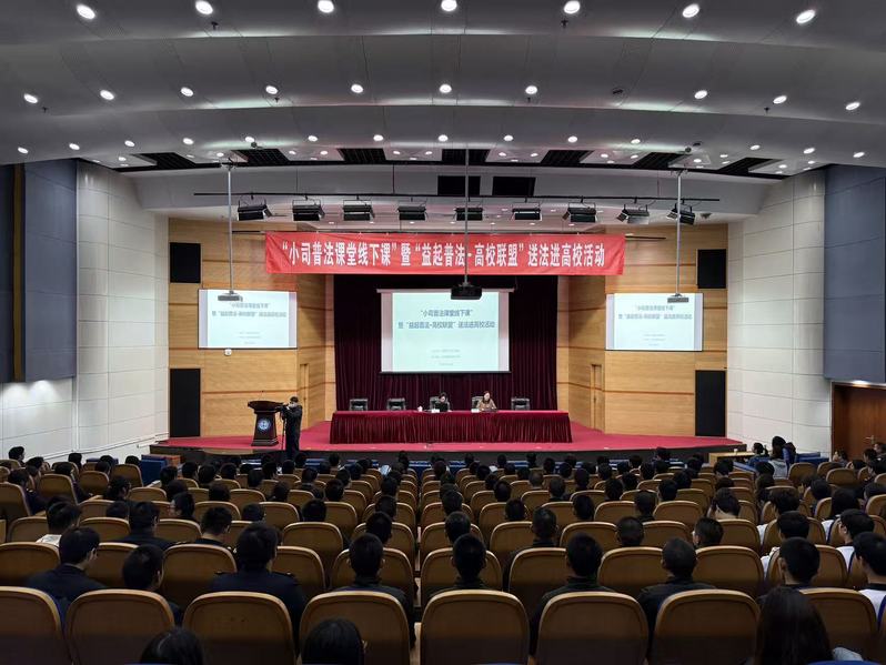 10月23日下午,我校与南京市江宁区司法局联合打造的“小司普法课堂线下课”暨“益起普法・高校联盟”送法进高校活动在图书馆大报告厅成功举办。活动邀请江苏御邦律师事务所执行主任、南京市青少年法治基地特聘讲师刘爱青律师主讲,同步通过江宁发布、直播江宁等平台在线直播,我校300余名师生现场参与,线上观众实时互动。活动由学校党委宣传部部长刘桂香主持。