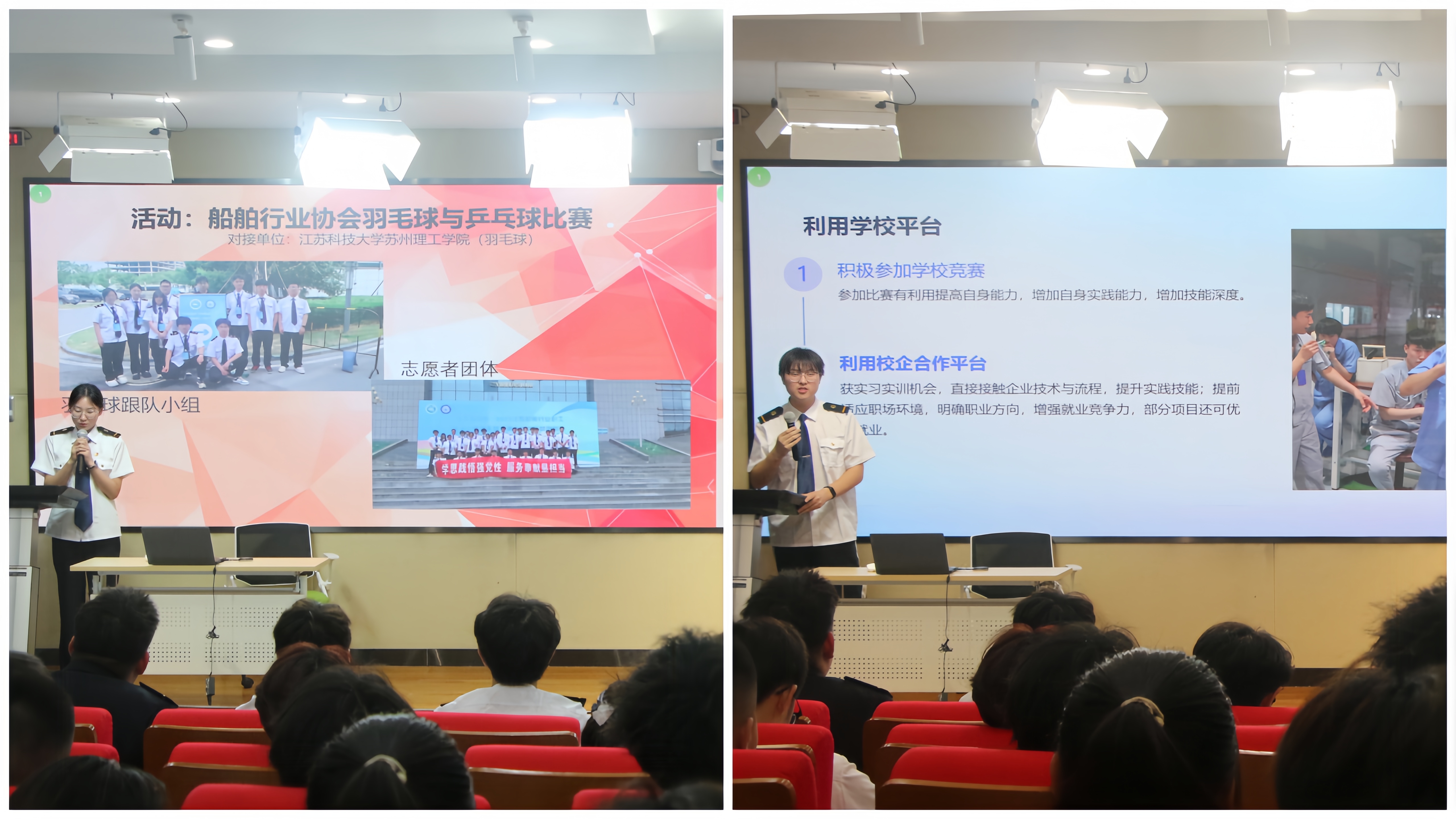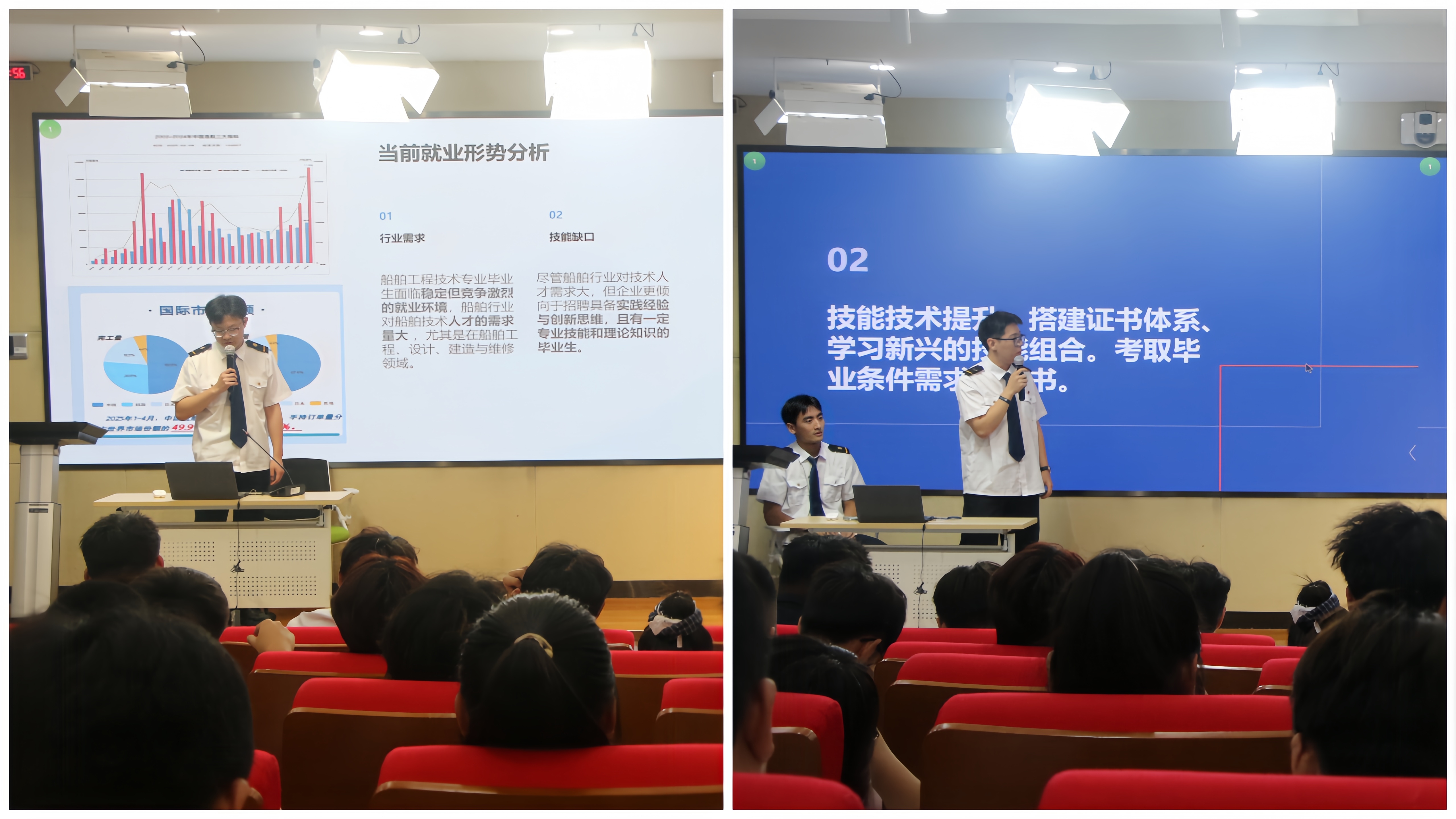 海工装备221301班王忠义受邀作为优秀学长代表分享了个人成长经历。在校期间,他担任国旗护卫队队长、校团委学生兼职副书记等职务,在专业学习、技能竞赛、社会实践和团学工作等方面均取得突出成绩。去年12月,他成为一名光荣的预备党员,未来他将继续永葆入党初心,为母校争光,为党旗添彩。