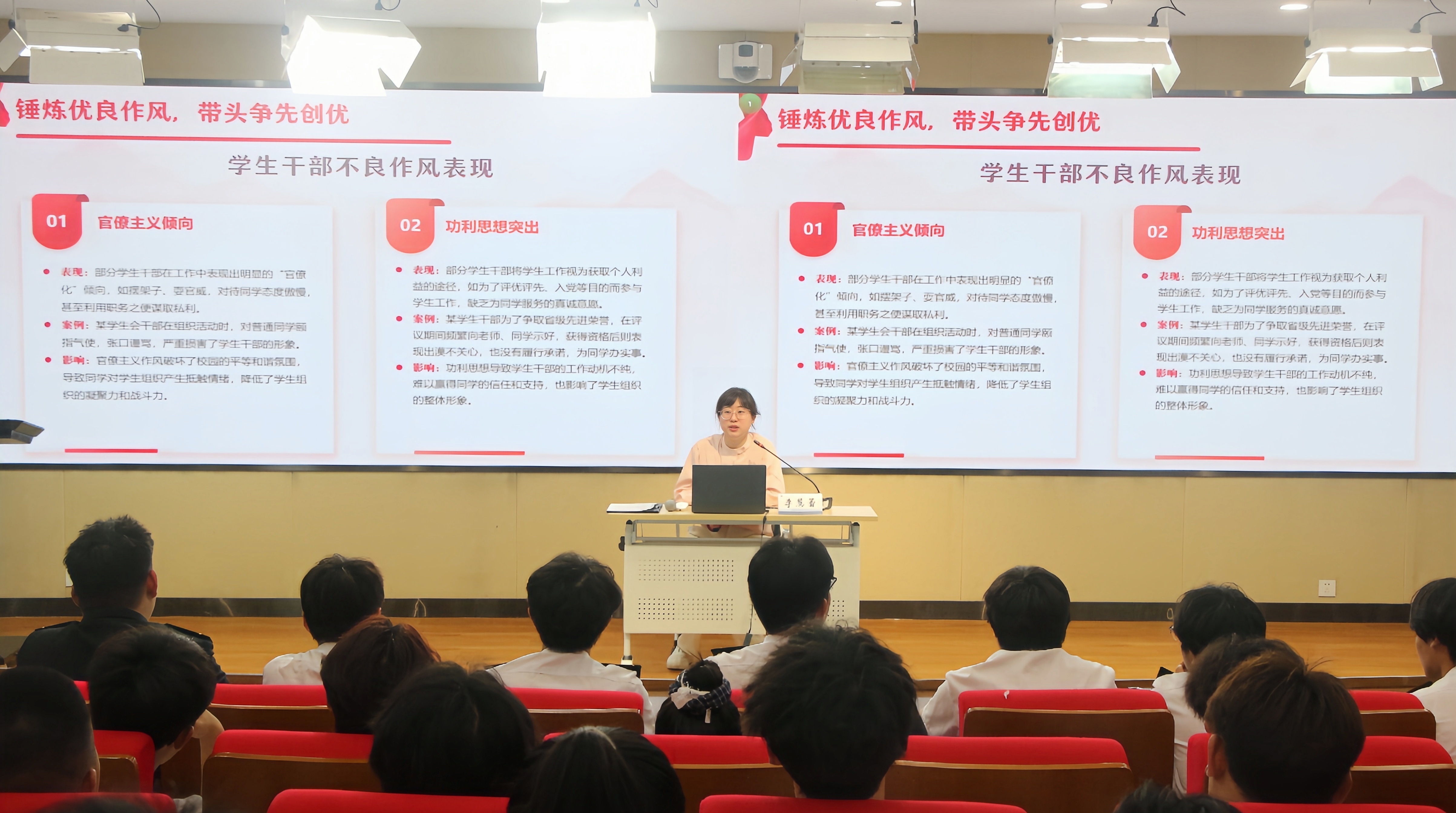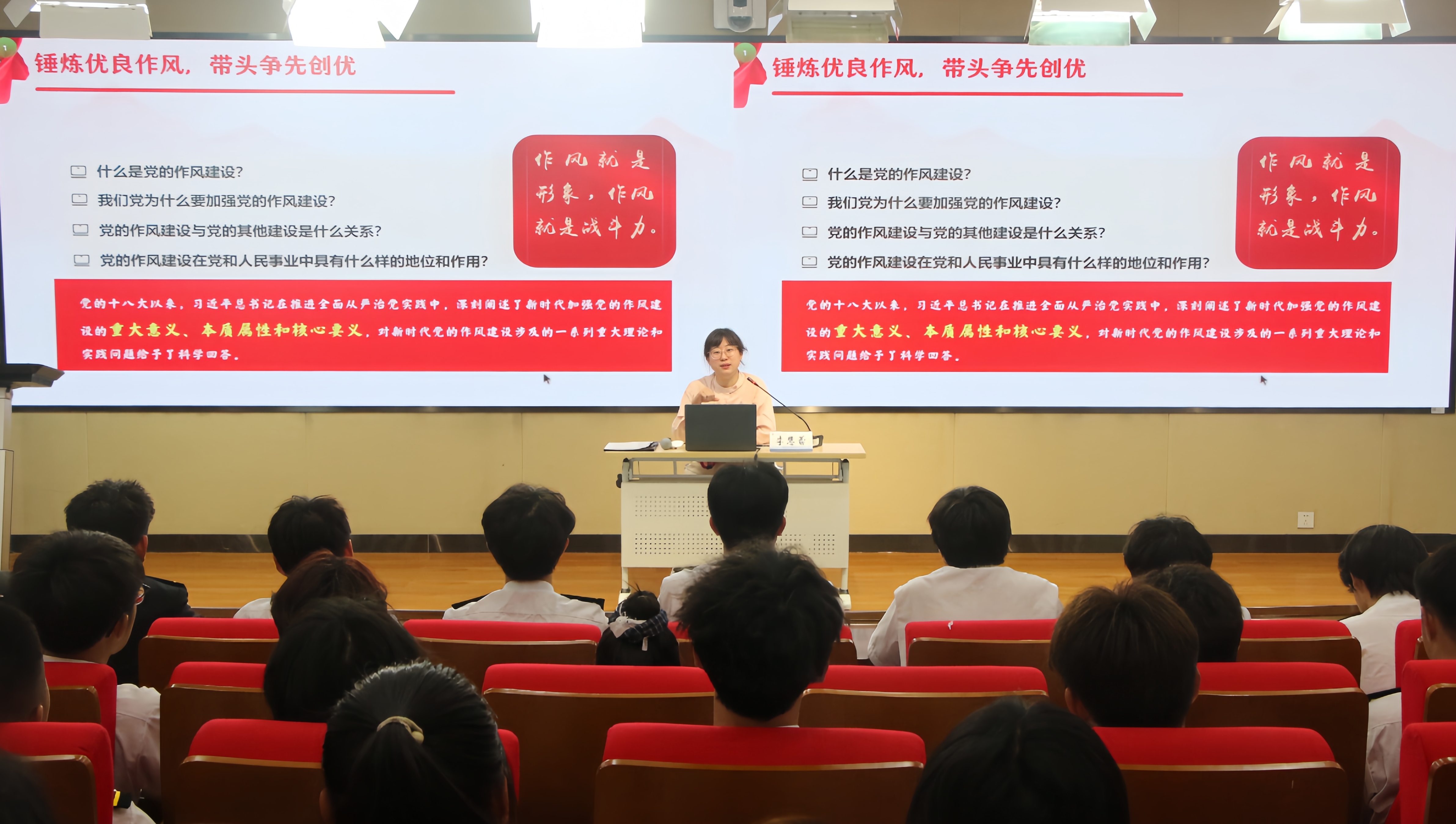 结合全党开展深入贯彻中央八项规定精神学习教育这一背景,李慧蕾老师带领学员们集体学习了中央八项规定的出台背景、精神实质及价值意义。她指出,我们党高度重视自身建设,特别强调“办好中国的事情,关键在党”“党的作风关系人心向背,决定党和国家事业成败”。她督促学员们认真学习习近平总书记关于加强党的作风建设的重要论述,深刻认识加强党的作风建设的重大意义、本质属性和核心要义,从思想深处正本清源,将理论学习转化为行动自觉,不断坚守初心使命,筑牢思想防线,锤炼优良作风,以实干担当践行新时代党员标准。