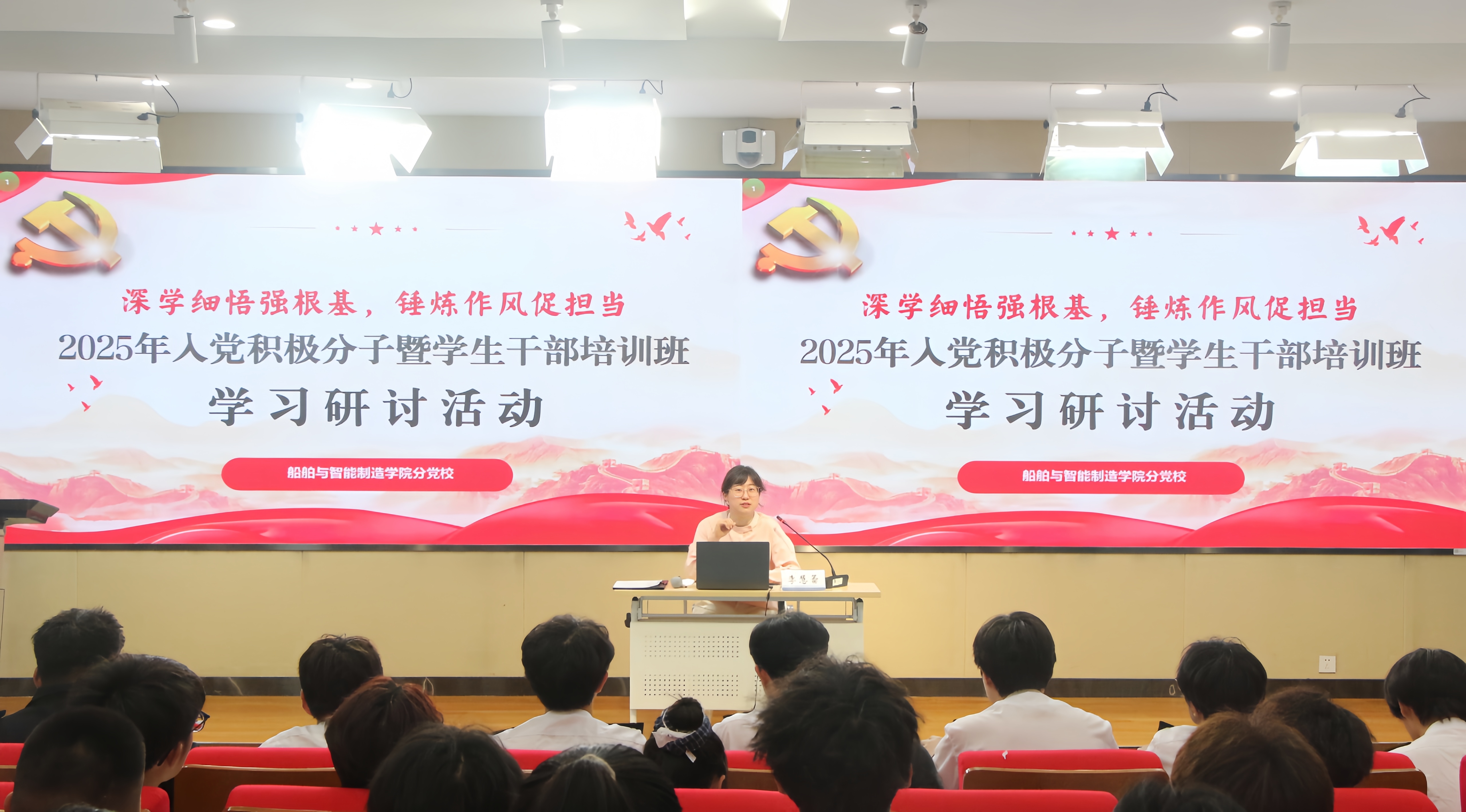 为促进党课学习走深走实,进一步激发学员们的政治热忱,做到学思用贯通、知信行统一,6月5日晚上,船舶学院2025年入党积极分子暨学生干部培训班于竞慧楼301教室开展了以“深学细悟强根基,锤炼作风促担当”为主题的交流研讨活动,此次活动由学生工作党支部李慧蕾老师主持。