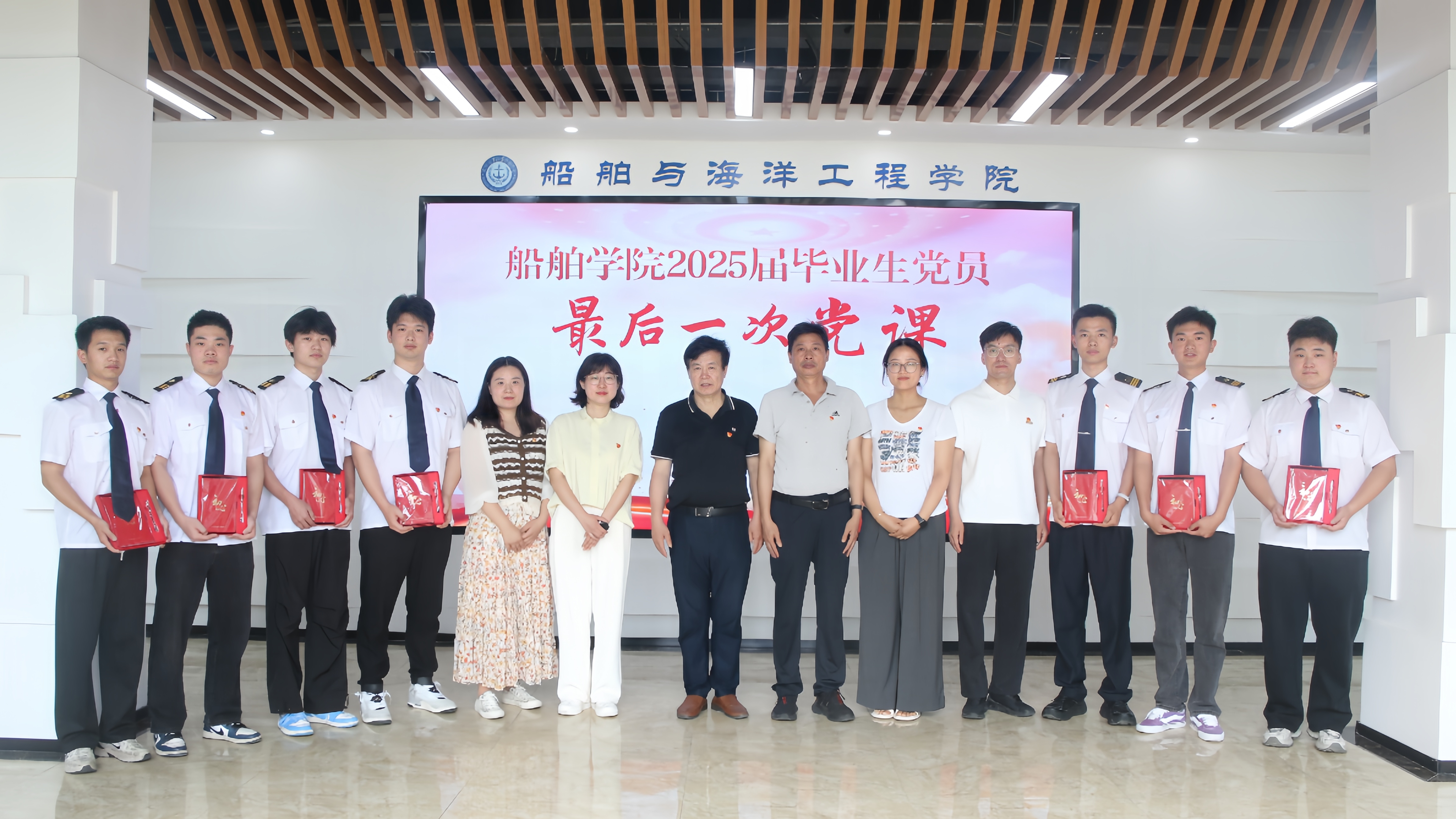 为做好2025届毕业生党员教育管理工作,引导毕业生党员不断提升党性修养,强化党员身份意识、责任意识和担当意识,结合深入贯彻中央八项规定精神学习教育,2025年6月6日下午,船舶学院在敏行楼201开展了2025届毕业生党员“最后一次党课”。学院党总支副书记戴雪头、关工委常务副主任谢荣、组织员陈慧、学生工作党支部李慧蕾及毕业班辅导员老师出席了活动。
