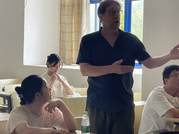 在外教的组织下,同学们分成四个小组进行讨论,各自表达对Transhumanism这一概念的理解和看法,各组还由代表和Richard进行交流。在沟通的过程中,中国学生的敢于想象,和外教开阔澎湃的思路极好地相互融合,彼此都理解并且吸收了对方观点里自己缺乏的东西,教学相长,气氛极佳。