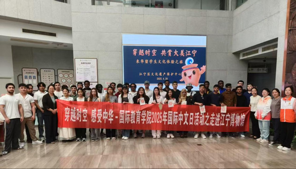 4月20日,在国际中文日当天,国际教育学院围绕主题组织来自老挝、印尼、孟加拉、塔吉克斯坦、吉尔吉斯斯坦、刚果、喀麦隆等国家的37名留学生来到江宁博物馆,穿越时空感受中华历史文化,体验传统非遗技艺。