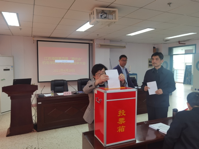 2021年4月28日下午13:00,机电学院分工会组织召开了第四届“两代会”代表选举大会,学校副校长陈晓琴、党总支书记胡明华等全体会员参加了大会,会议由院长马洪涛主持。