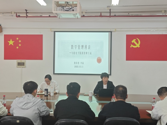 10月11日,为加深新入职教师对教学管理规章制度以及质量管理体系程序文件的理解,以提升师资教学能力,加快适应项目化教学的要求,机电学院特邀请教务处副处长李淼在海涵楼1001会议室为13名新入职教师做“教学管理漫谈”主题讲座,讲座由机电学院副院长季明丽主持。