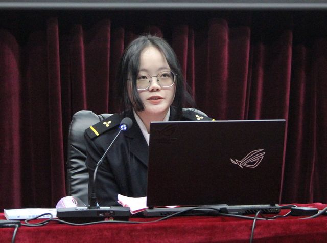 包场中学2023届毕业生、我院2023级轮机工程技术专业学生毛宇星作为学生代表上台发言,她从学业上、生活上回顾了来到海院两个多月来的点点滴滴,介绍了海院的吃穿用住行,尤其是海院的主题餐厅和美食文化,最后希望学弟学妹们都能在最好的年华里拥抱江苏海院。