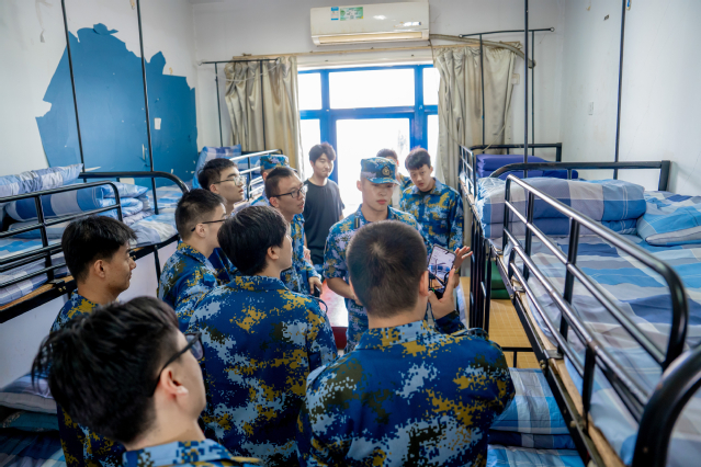 下午训练的核心内容是内务整理,全体学员返回各班宿舍,在教官的指导下开展“精细化内务攻坚”。教官们详细讲解整理标准,亲手示范内务整理技巧,深刻分析内务整理以小见大、锤炼作风的深刻意义。学员们认真学习、相互交流,从抚平床单褶皱到调整被子棱角,每一个细节都力求完美,在实践中体悟“微观秩序铸就宏观安全”的船员职业准则。在内务评比阶段,带训教官和辅导员班主任组成评审组,按照统一标准对各班宿舍进行打分,最终评选出四间模范宿舍并授予流动红旗表彰,以榜样力量激发了全体学员的集体荣誉感,推动半军事化管理要求融入学员宿舍精神文明建设。