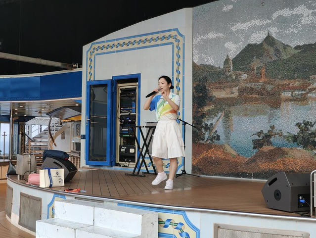 2023年夏天,张莹萱又给自己定下了一个新的目标来鞭策自己。她想成为一名邮轮娱乐部的员工,在邮轮的舞台上更好地展示自己的舞蹈,实现自己儿时的舞台梦。有了目标,便有了行动。利用船期的空档,张莹萱重新拾起了自己的舞蹈才艺,经过刻苦训练以及前期积累的工作经验,很快便被爱达地中海号邮轮所相中,将邮轮上甲板舞台交给了她。