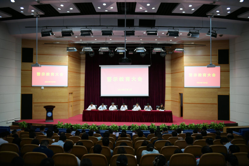 为深入推进党纪学习教育,充分发挥反面典型的警示作用,开展以案明纪、以案说责、以案促改,教育引导广大党员干部常敲思想警钟、常紧纪律之弦、常存敬畏之心,7月5日下午,学校在图书馆大报告厅召开2024年警示教育大会。校领导、全体中层干部、内设机构负责人,财务处、国资处、后勤处、基建处、智慧校园建设处全体工作人员,离退休党员代表、教职工党员代表、学生党员代表等共206人参加会议,全体与会人员观看了警示教育片。校党委书记万健出席会议并讲话,会议由党委副书记、校长温华兵主持。