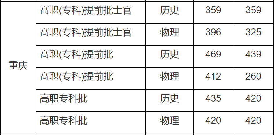 招生批次:高职(专科)提前批(军士)、高职(专科)提前批、高职(专科批)招生代码:325D(定向培养军士)、3243普通专科批官方网站:重庆教育考试院